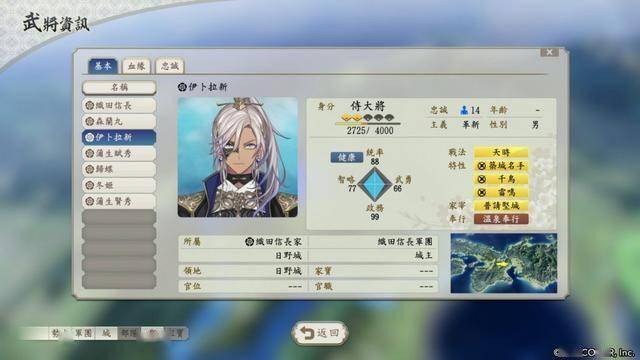 新武将特性则有 10 个以上,如反击骑兵突击的「枪阵」、使同盟期限延长至 15 个月的「威加海内」、提升麾下武将能力经验值的「伊吕波歌」、在前线担任城主时可提升部队能力的「死中求活」等。