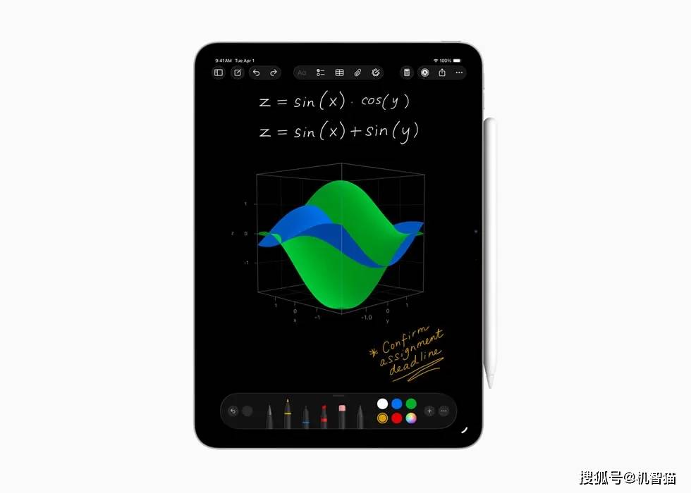 其他应用也增强了生产力功能。计算器在数学笔记中增加了新3D图形功能,用户可以书写带有三个变量的方程并创建三维图形。备忘录新增导入和导出为markdown文件的功能,还支持在电话App中将对话录制为带转写文本的录音。工具调色盘新增芦苇笔,使用Apple Pencil或触控能实现美术字效果。
