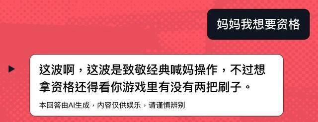有人对着AI喊了一天的妈,收到AI“这波是致敬经典喊妈操作,想拿资格还得看你游戏里有没有两把刷子”的冷嘲热讽;