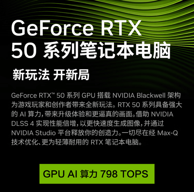机械革命极光X潮玩版游戏本搭载了基于Blackwell全新架构的GeForce RTX 5060或RTX5070笔记本电脑GPU,具备115瓦满功耗释放和8GB GDDR7大容量高速显存。目前,超过700款游戏和应用采用RTX特性,借助前沿AI技术DLSS4,实现逼真的图形效果和超乎想象的快速性能。
