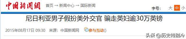 中国新闻网-2015-08-017-《尼日利亚男子假扮美外交官 骗走英妇逾30万英镑》