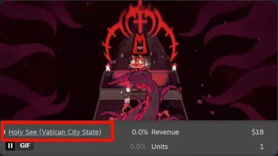 说是“热门”,其实就只卖出了一份。但考虑到梵蒂冈占地0.49平方千米的国土面积——也就一个小区的大小,3000人的常住人口里基本都是不怎么玩游戏的宗教人士,已经算相当“亮眼”的成绩。