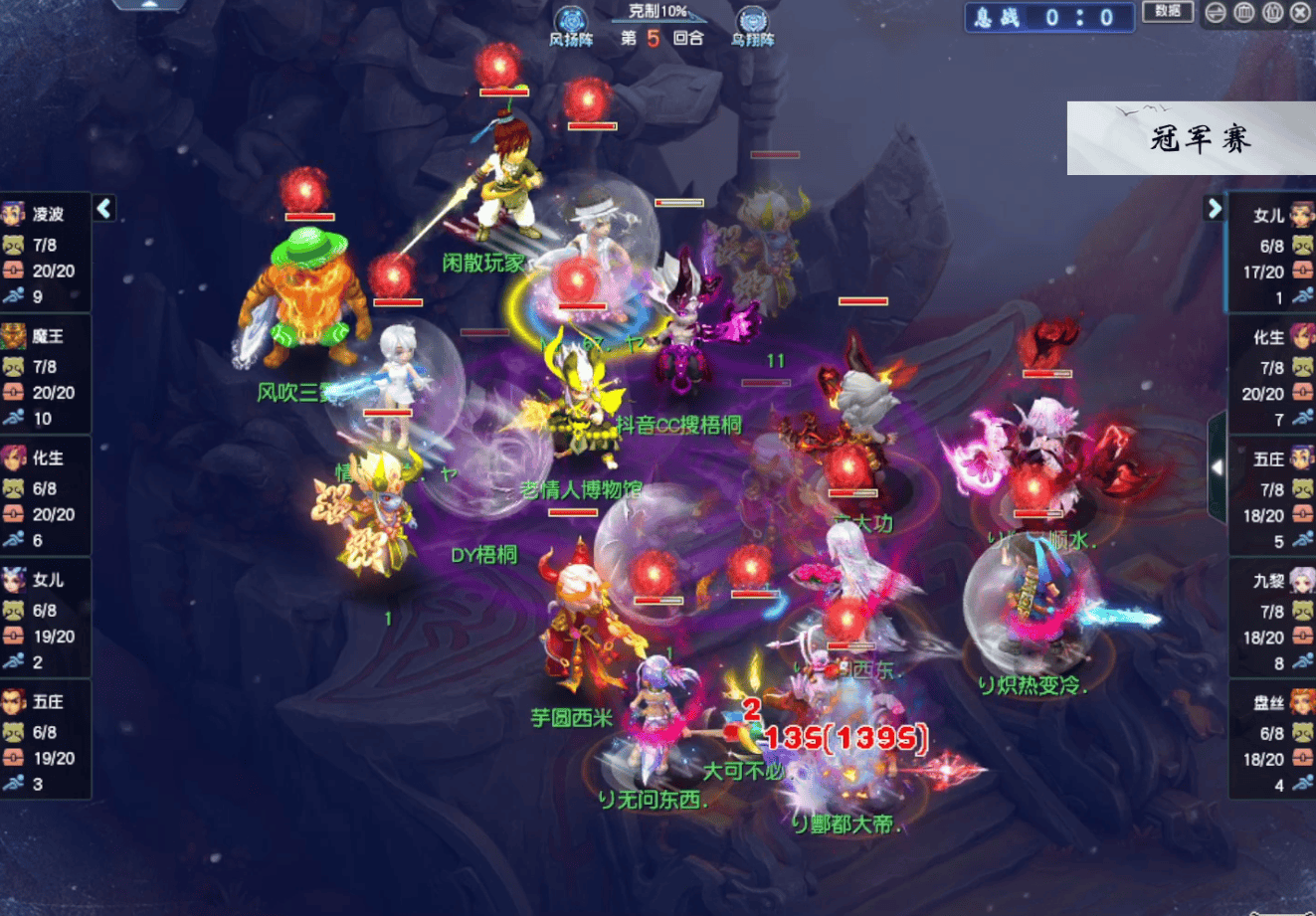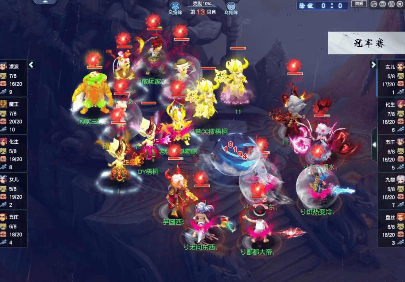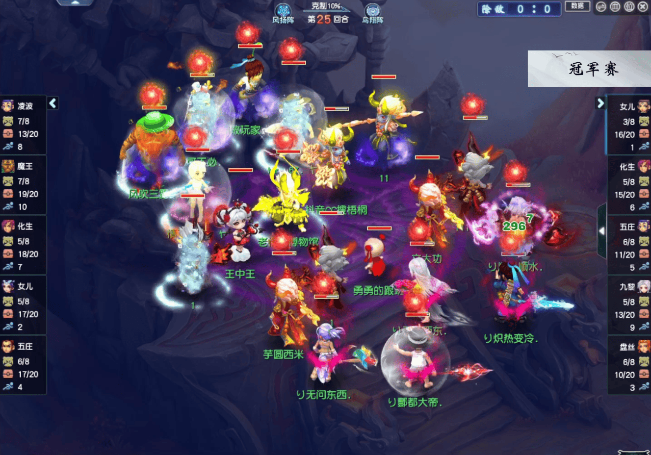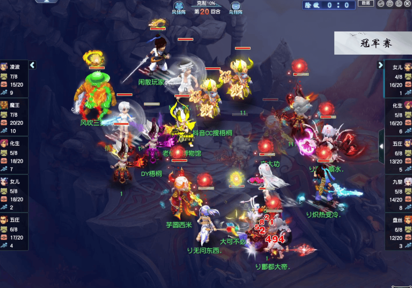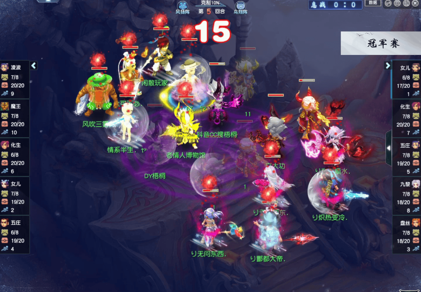 比赛第20回合,钓鱼岛凌波城再度出手,一度将珍宝阁盘丝、五庄血量打残。不过,由于珍宝阁成功控住钓鱼岛魔王寨的蓝量,勉强逃过一劫。