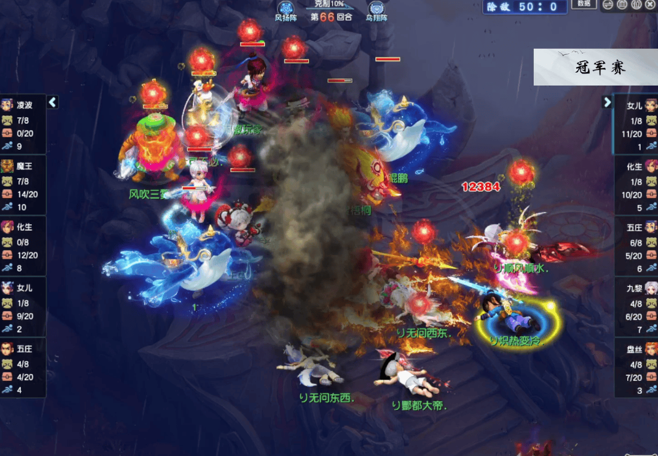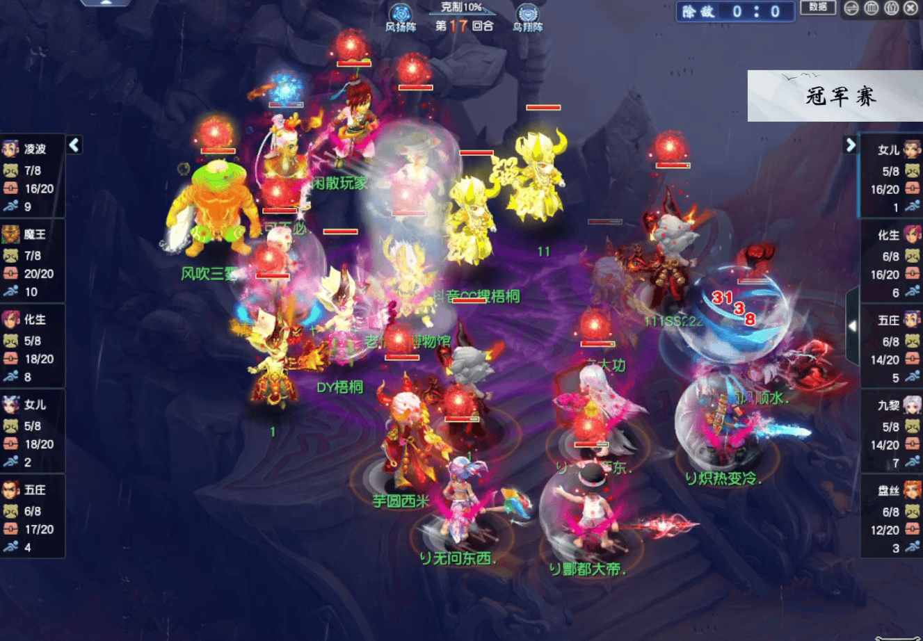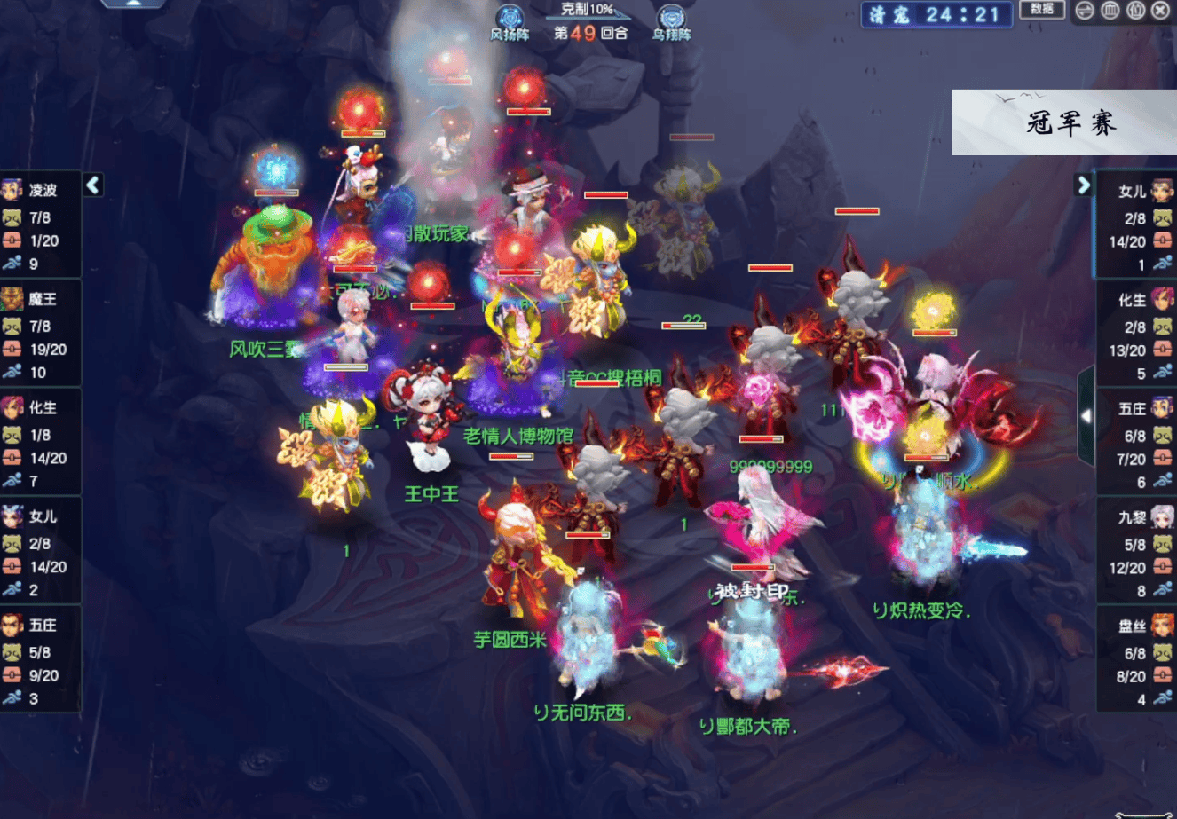 比赛第17回合,钓鱼岛凌波、魔王果断出手,成功放倒珍宝阁九黎城,将其愤怒清空。