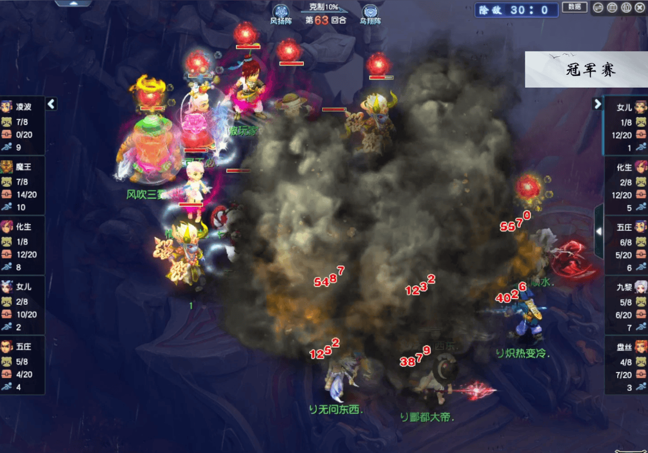 比赛第60回合,钓鱼岛立马还以颜色,秒掉了珍宝阁盘丝、化生,并于次回合秒掉了九黎城,基本锁定比赛胜局。