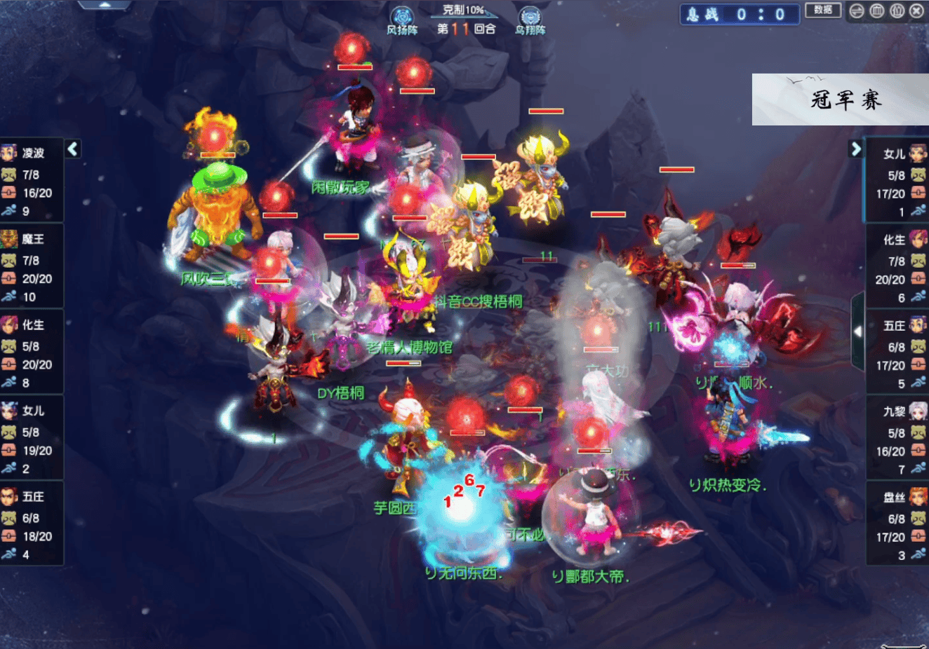 比赛第11回合,珍宝阁无奈上起纸人,开启防御模式抵御钓鱼岛的面伤进攻。不过,对于钓鱼岛来说,只要给凌波城、魔王寨加好蓝,珍宝阁不管怎么操作,自己都能“一力破万法”。