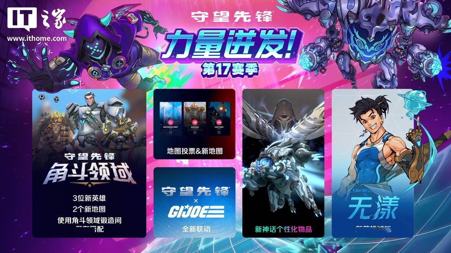 《守望先锋》官方表示:“全新赛季将带来丰厚的奖励和更多精彩玩法!从地图投票到角斗领域的创新,再到史无前例的双神话皮肤首发,我们准备了全新地图、限时活动以及内容丰富的战令 —— 第 17 赛季就是要让你的游戏体验全面升级,让我们共同期待 6 月 25 日的到来吧!”