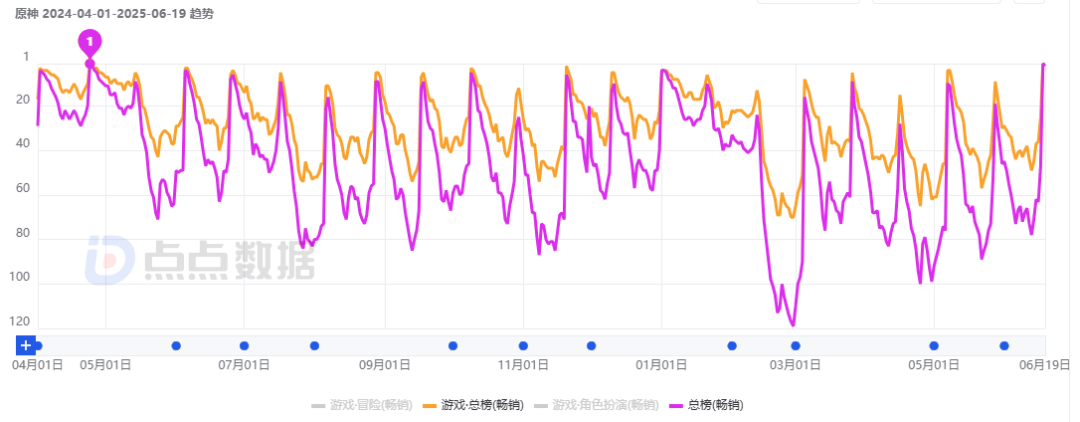 在各大社区,这个成绩引发了不少讨论,因为《原神》已经阔别畅销总榜TOP 1太久,上一次登顶,还是2024年4月的时候。