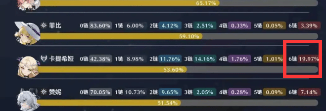 根据统计,目前卡提希娅的的占有率并不是很高,但是满命持有率站了全部角色的1/5,接近恐怖了20%,2.4的流水爆炸,卡提希娅功不可没。