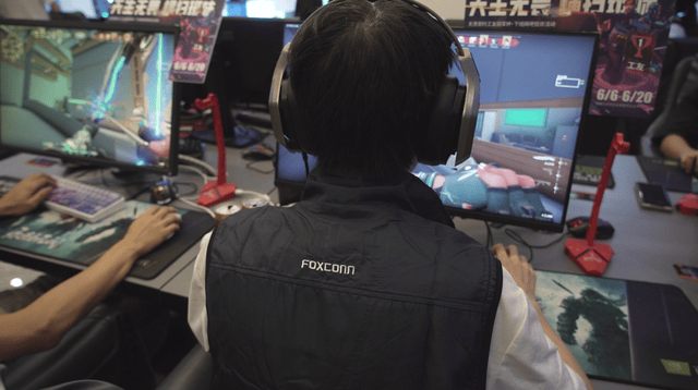 决赛当天,赛场设在富士康厂区旁的网吧,观众席上挤满了身着工装的工友。饿了么骑手、顺丰快递员与富士康员工共同组成观赛方阵,为选手呐喊助威。最终,两支富士康队伍会师BO3巅峰对决,上演了一场“工厂内战”。