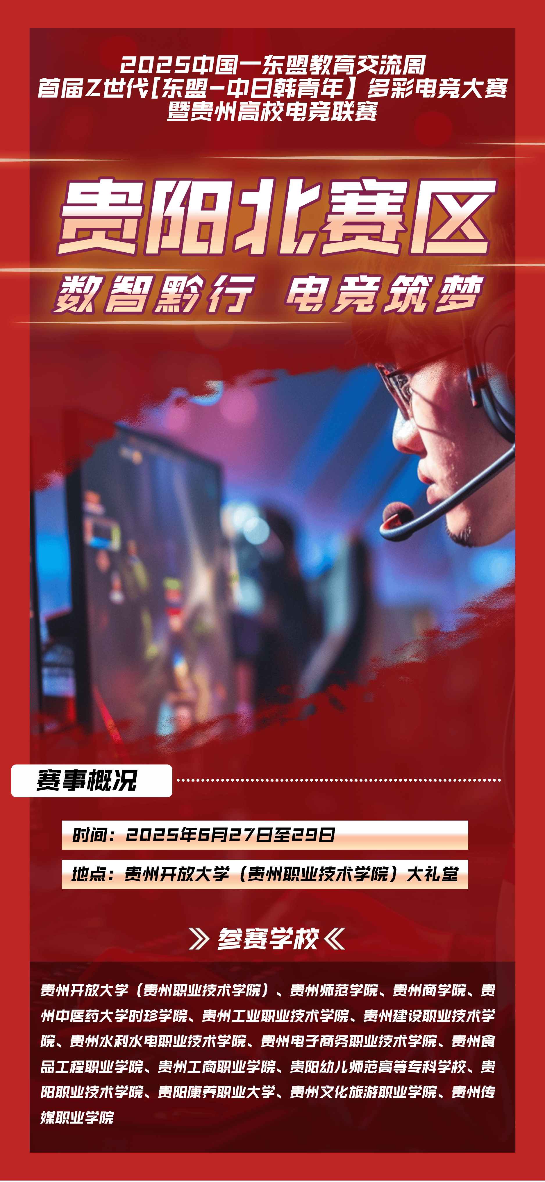 近日,“数智黔行·电竞筑梦”首届Z世代多彩电竞大赛贵阳南北赛区赛事激战正酣,为贵州高校电竞爱好者奉上了一场场酣畅淋漓的电竞大赛。本次大赛由中国-东盟教育交流周组委会秘书处主办,旨在搭建东盟、中国、日本、韩国青年之间的电竞文化交流桥梁,推动贵州高校电竞事业蓬勃发展。