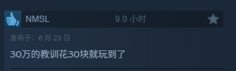 在游戏的评论区,不少玩家称:30万的教训花30块就买到了。