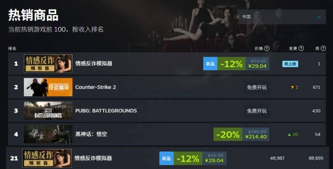 也有一部分网友对游戏非常认可,双方产生争执,随着舆论的不断发酵,《捞女游戏》热度持续攀高,当前已经位居中国区Steam游戏热销榜首。