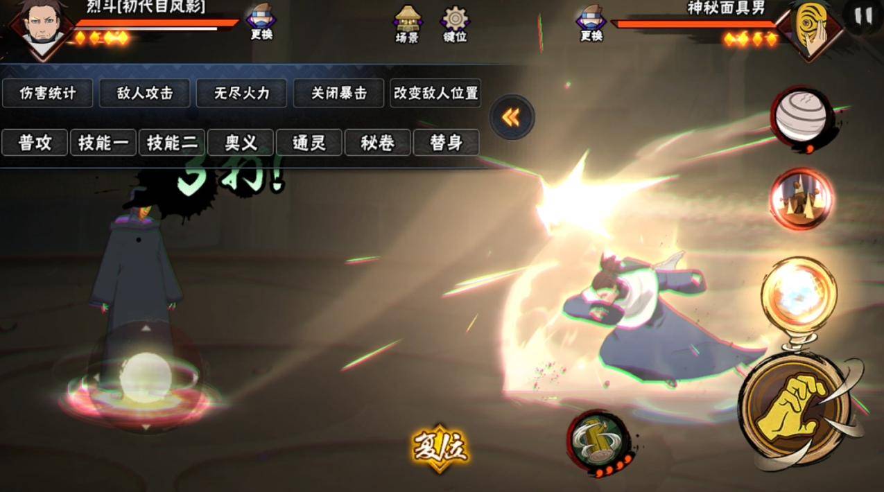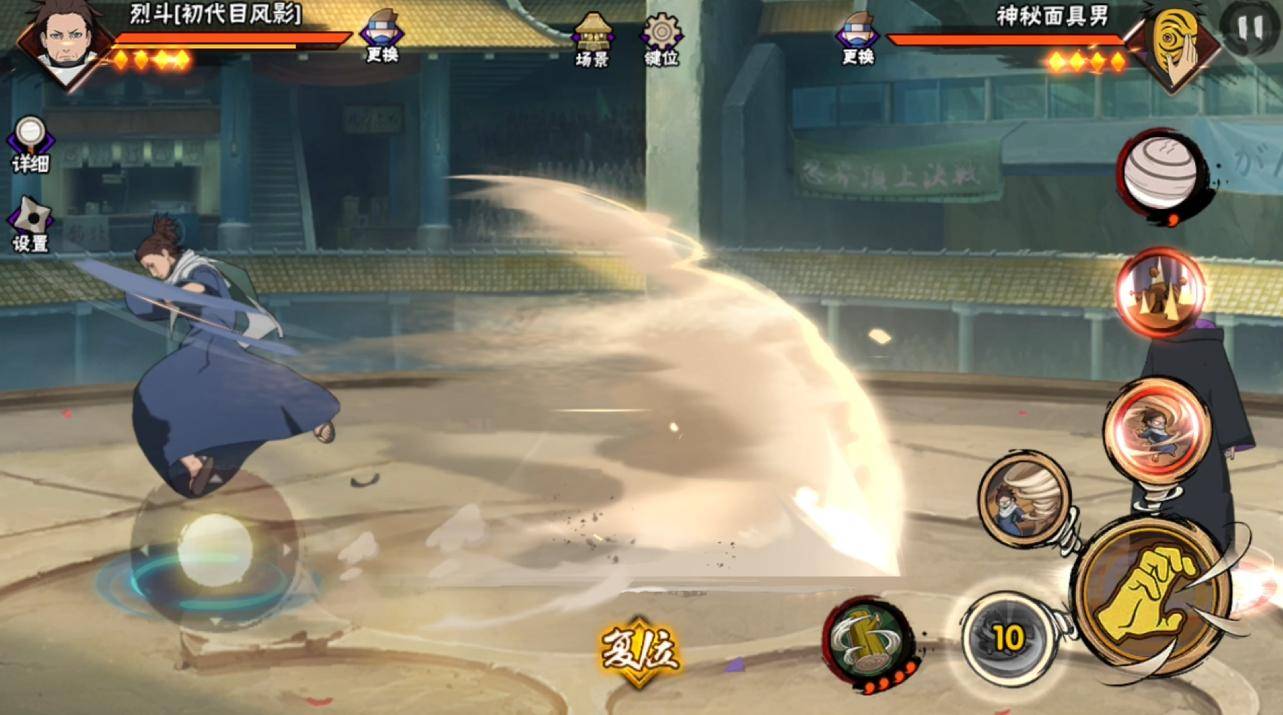 二技能就是一个近身的龙卷攻击,有一定释放前摇,三技能加一技能的强化效果会有两种情况,第一种情况就是会在三技能的基础上扩大飓风的范围,第二种情况就是你利用这个攻击命中对方,后半段会把飓风推出去,本体出现。初代目风影烈斗在被飓风包裹的时候会有短暂的无敌,比如单独释放三技能或者是三技能加二技能延长持续时间。
