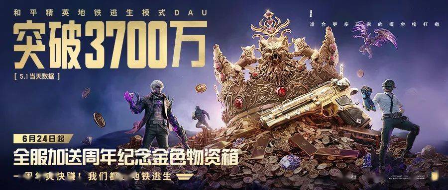 6月24日,《和平精英》首次公布了“地铁逃生”模式的DAU成绩——五一当日超3700万。