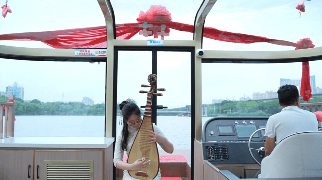 ✅民乐演奏助阵:现场琵琶演奏《青花瓷》《美丽的神话》,让孝感母亲河化身千年戏台!