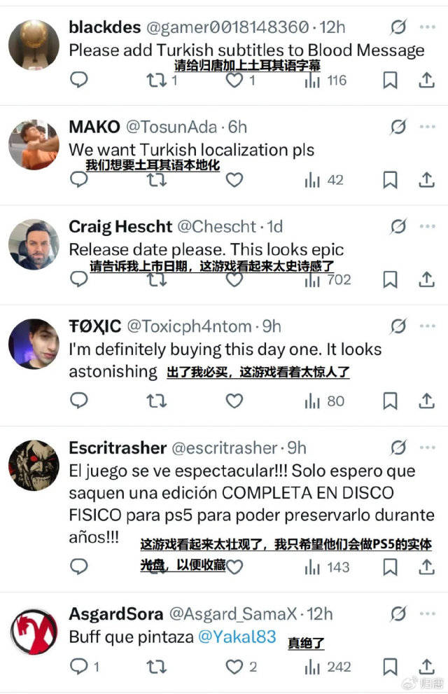 除了本国的游戏玩家们,外国的游戏发烧友对这款横空出世的游戏也是非常期待,不少玩家在评论地下问什么时候发布、可不可以出其他语言、出了必买等等……