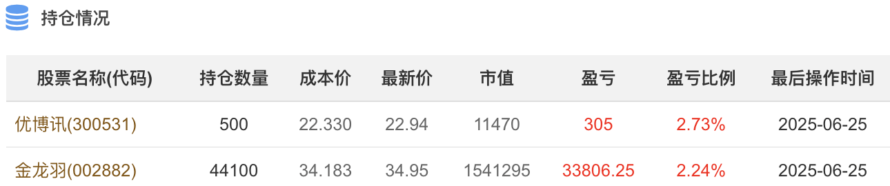 周三卖出泰和科技,最终获得18.37%收益大赚,目前持有金龙羽、优博讯,看好固态电池、数字货币方向。周三avonn119比赛收益30%!