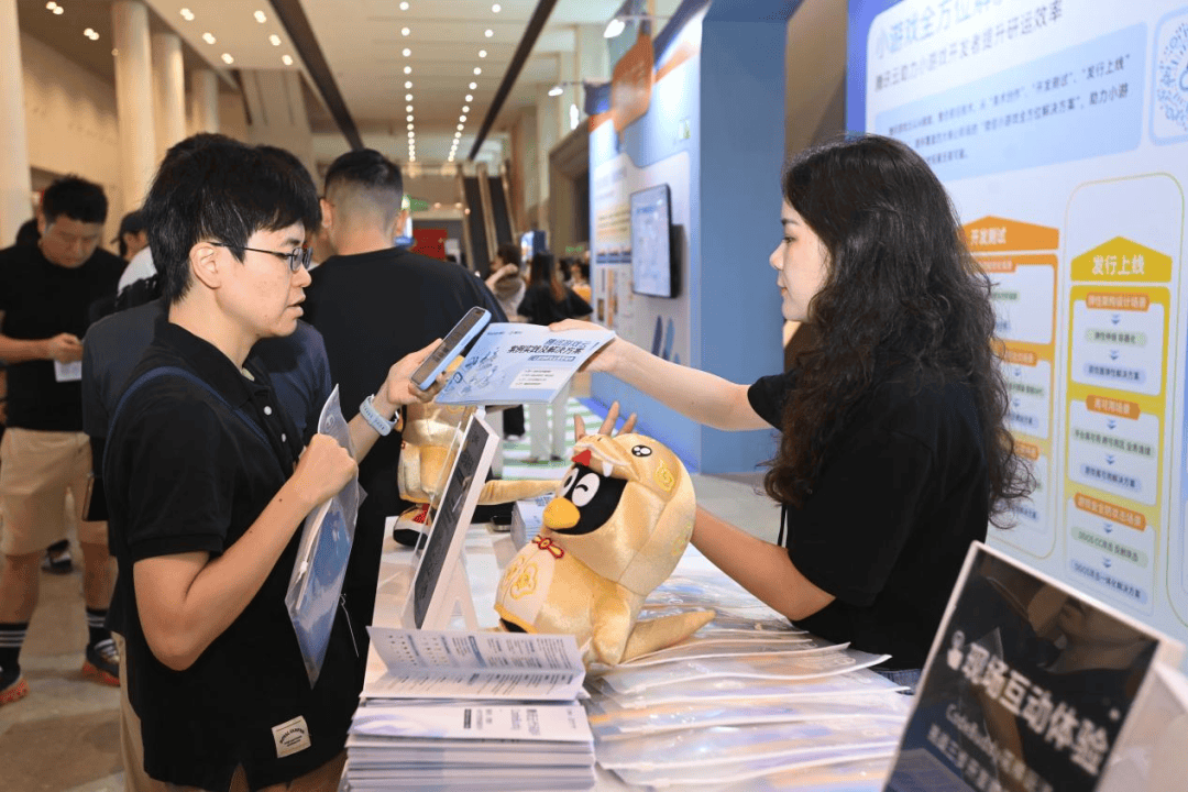 ▲小游戏开放者在互动体验区交流。冉雨琳 摄
