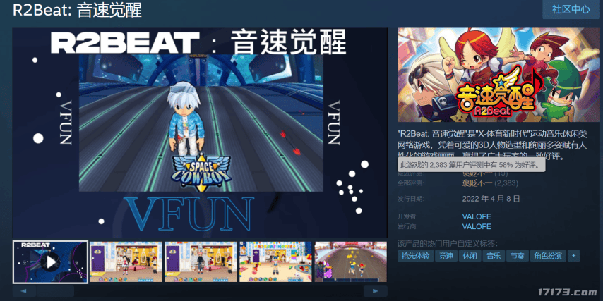 腾讯的《QQ音速》因为诸多原因早就2019年已经停运了,后续韩国开发商想要炒冷饭,在2022年在Steam平台以《R2Beat:音速觉醒》的名字重新上架游戏了。