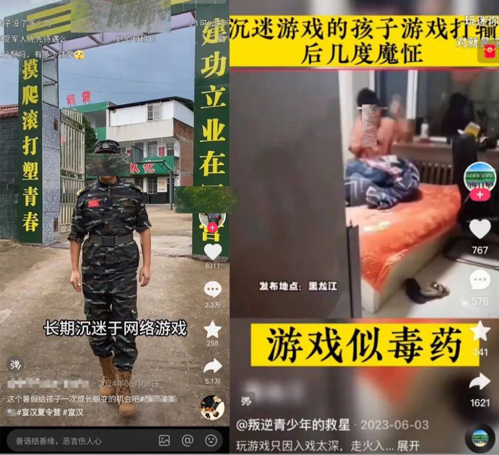 通过社交平台的内容,尤其是声色俱茂的短视频,将“游戏”和“网瘾”“叛逆”“行为不端”绑定到一起,精准捕获家长,再将孩子送入 “XX 改造营”、“XX 特训中心”,就是当前“反游戏”产业生态中的新常态。