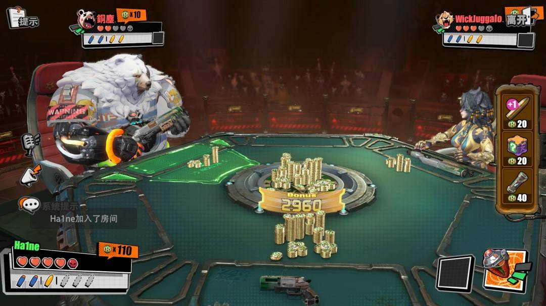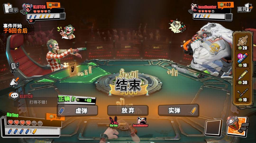 局内经济系统,是我认为《轮盘猎人:命运赌局》对“俄罗斯轮盘赌”最成功的电子化改动,也是线上玩法最显魅力的诠释。