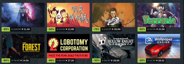 以下是在本次Steam特卖活动中,以历史最低价格出售的游戏。