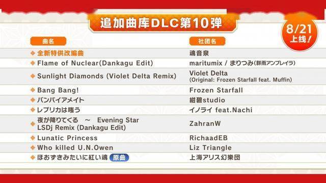 以及,第10~第12弹的追加乐曲包内容也已一并公开,并推出包含以上内容的季票 “Season Pass 2”,现已登陆Steam、NintendoSwitch及PlayStation®4平台。