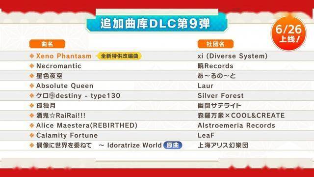 以振兴「东方Project」为宗旨的社团「Unknown X」于2025年6月26日,正式上线了东方Project官方授权二次创作游戏《东方弹幕神乐 失落幻想》(下简称为“失落幻想”)的“追加乐曲包第9弹”。 在第9弹中,节奏游戏人气作曲家xi创作的全新改编曲《Xeno Phantasm》作为本作中第3首最高难度【X】等级乐曲登场。此外,还收录了多首人气改编曲,内容十分丰富。