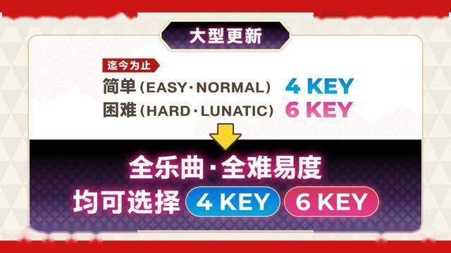 此次重大更新后,所有曲目在所有难度下都支持4键和6键的自由切换。