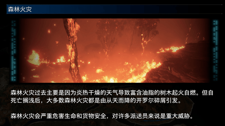 相比前作,这代的大世界显得更加真实,玩家在送货时不仅有地形阻拦,更会频繁的遭遇如“地震”“洪水”“火灾”等灾害,更符合一个末世背景下的世界样貌,这些自然现象也被编剧套上了一层“超自然版本”。