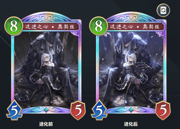 不过《影之诗:超凡世界》在入场动画、卡牌立绘和进化演出效果上确确实实是升级了,变得更加华美酷炫。