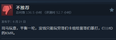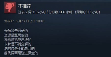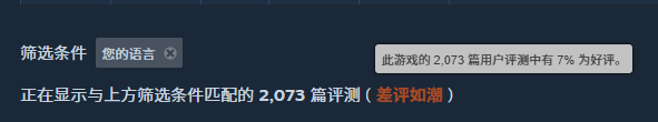 然而,游戏的口碑却一路狂跌,Steam好评率仅有16%(写稿时回升到28%),如果筛选简中的话那更惨,仅有7%,大有要抢夺《三国杀》地位的势头,真实上演了“冰火两重天”。