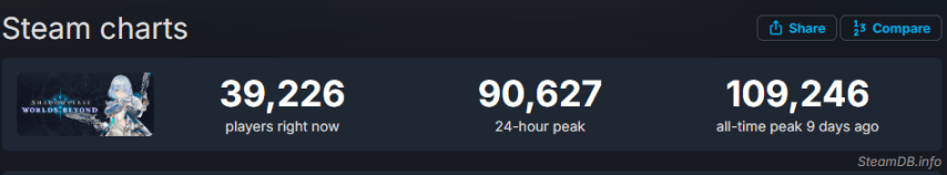游戏上线首日直接登顶日服iOS畅销榜,并霸榜4日,截止写稿之时依旧是畅销榜第一,Steam平台在锁国区的情况下,同时在线人数则逼近11万。