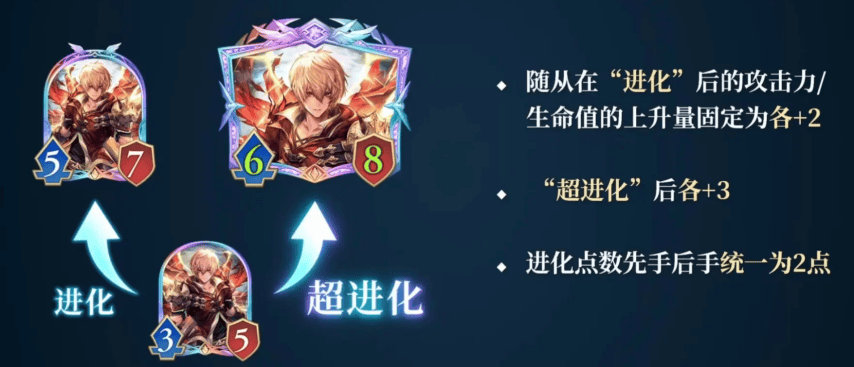 《影之诗》的玩法除了用法术和随从对打,最大的特点是“进化点”,进化既可以强化随从,也能触发一些随从的特殊效果。