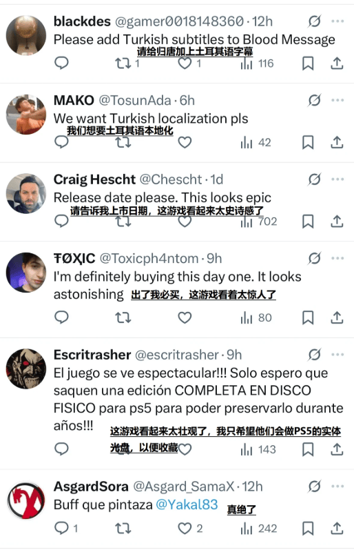 这种情感跨越时空、超越国界。预告片发布后,海外玩家在 YouTube 评论区纷纷留言询问发售日期,并表示“出了必买”。一位网友感慨:“不需要懂得中国历史,也能理解一个人为回家可以付出什么。”当信使在黄沙中蹒跚前行时,世界玩家看到的不只是一场冒险,更是人类共通的情感体验。