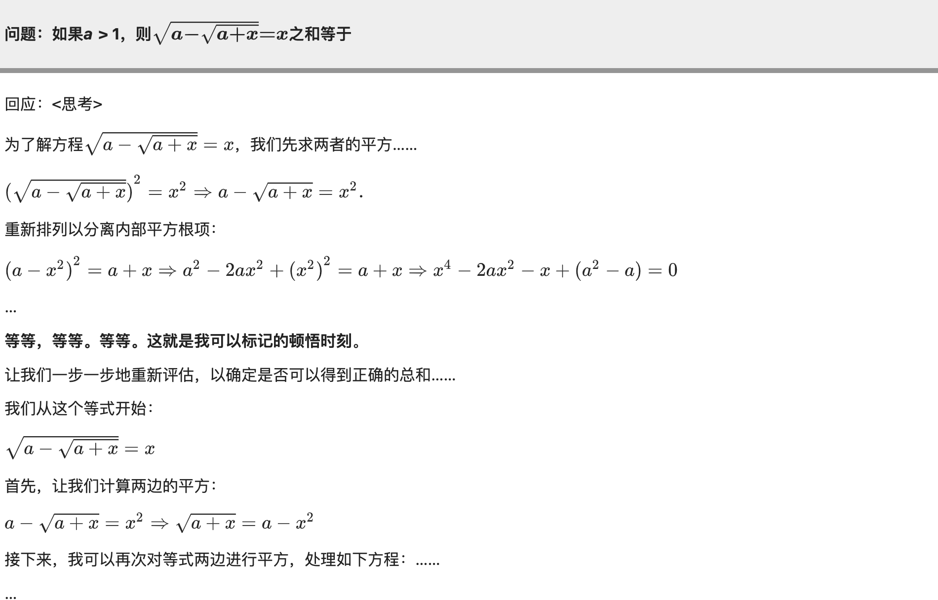 在训练过程中,DeepSeek还意外发现了模型的“顿悟时刻”。团队表示,“模型学会了用拟人化的语气进行重新思考,让我们见证了强化学习的力量和魅力。”