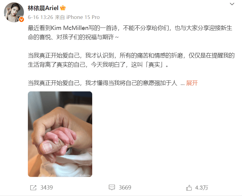 林依晨在今年6月顺利生下二胎儿子,其经纪人周美豫表示,林依晨这一胎仍然是自然分娩,孩子长得像爸爸,十分俊俏。她说,依晨怀第二胎过程中身心状态一直很好,也一直在持续工作,四肢依旧纤细,只是相比上一胎,肚子更大了一些。