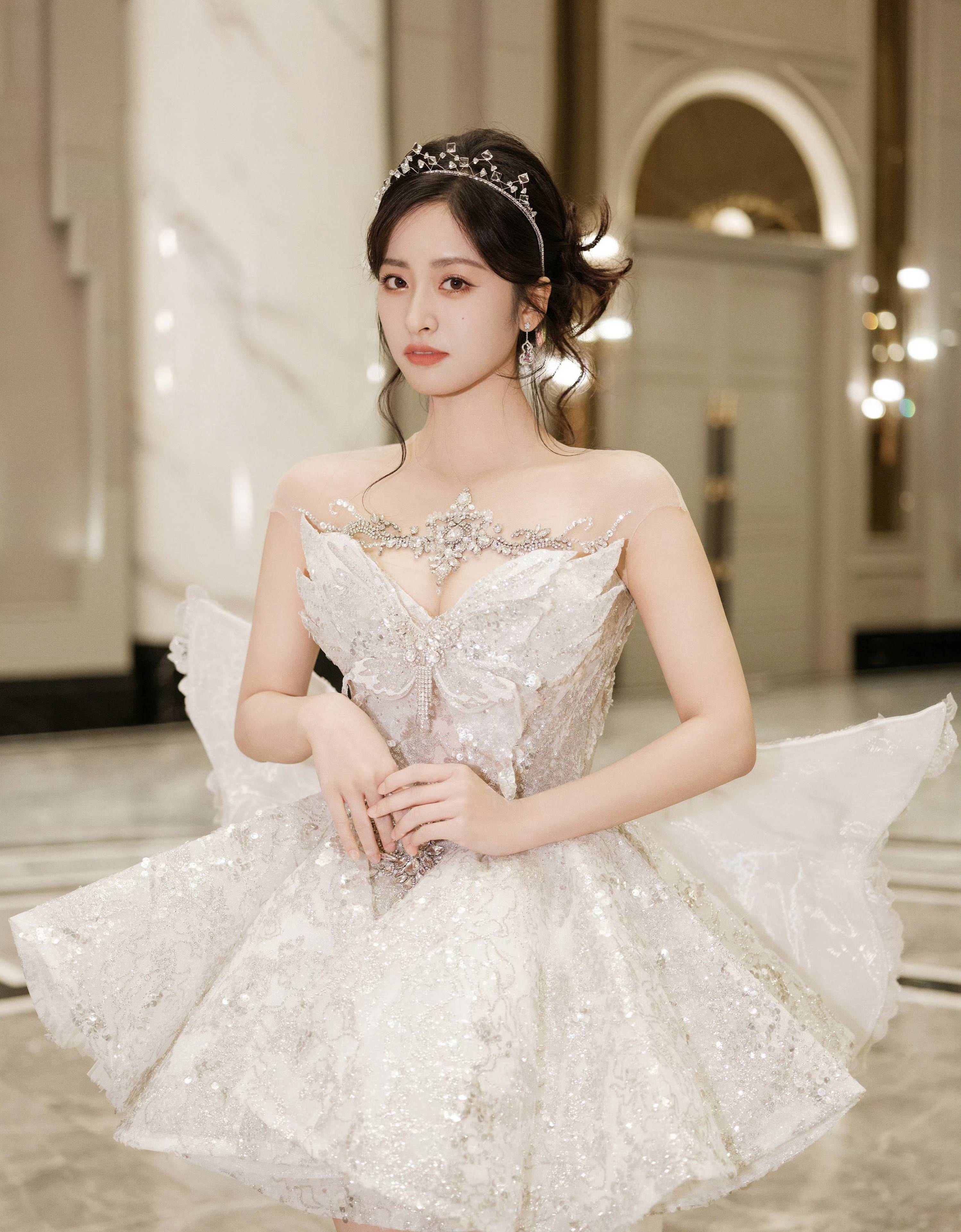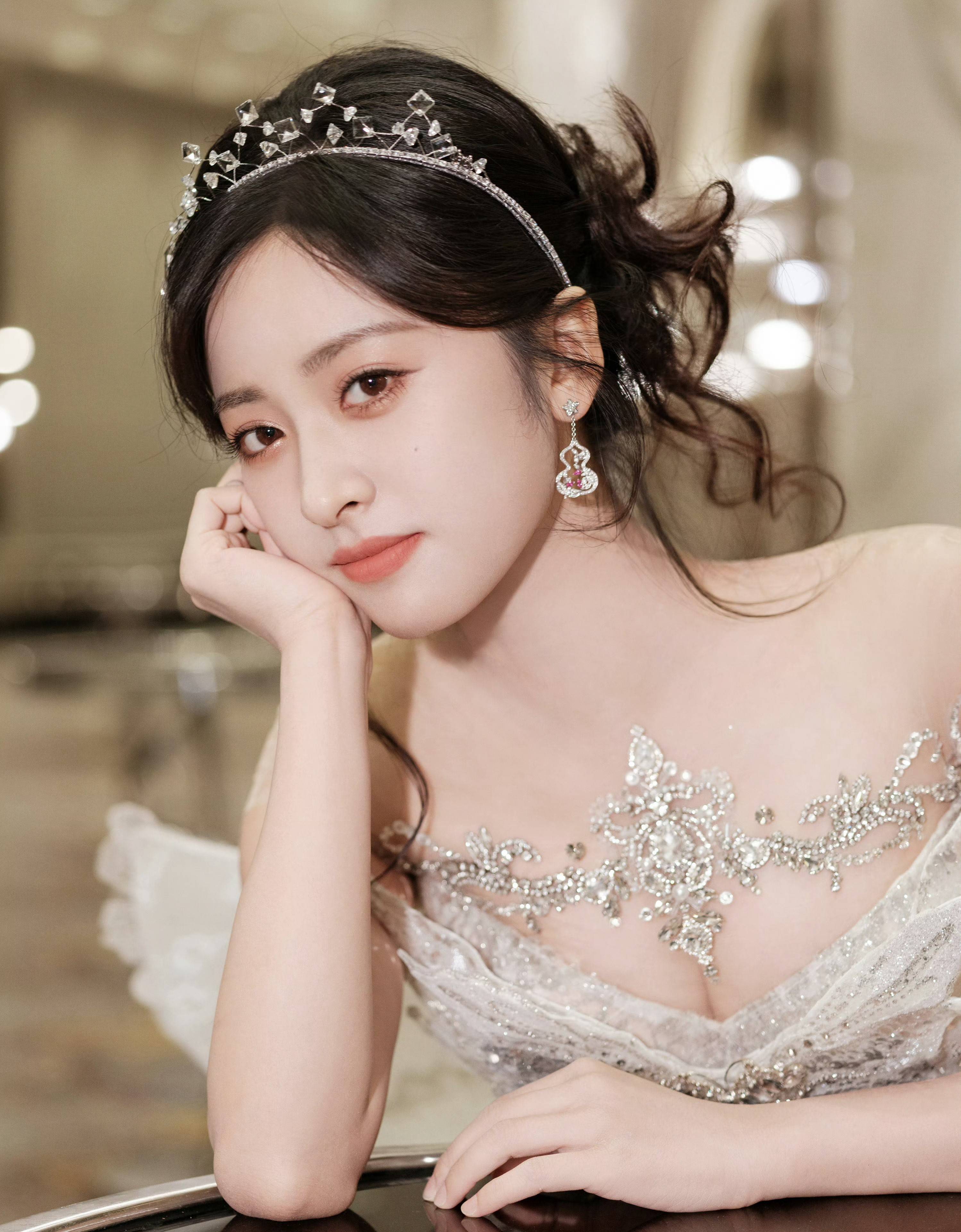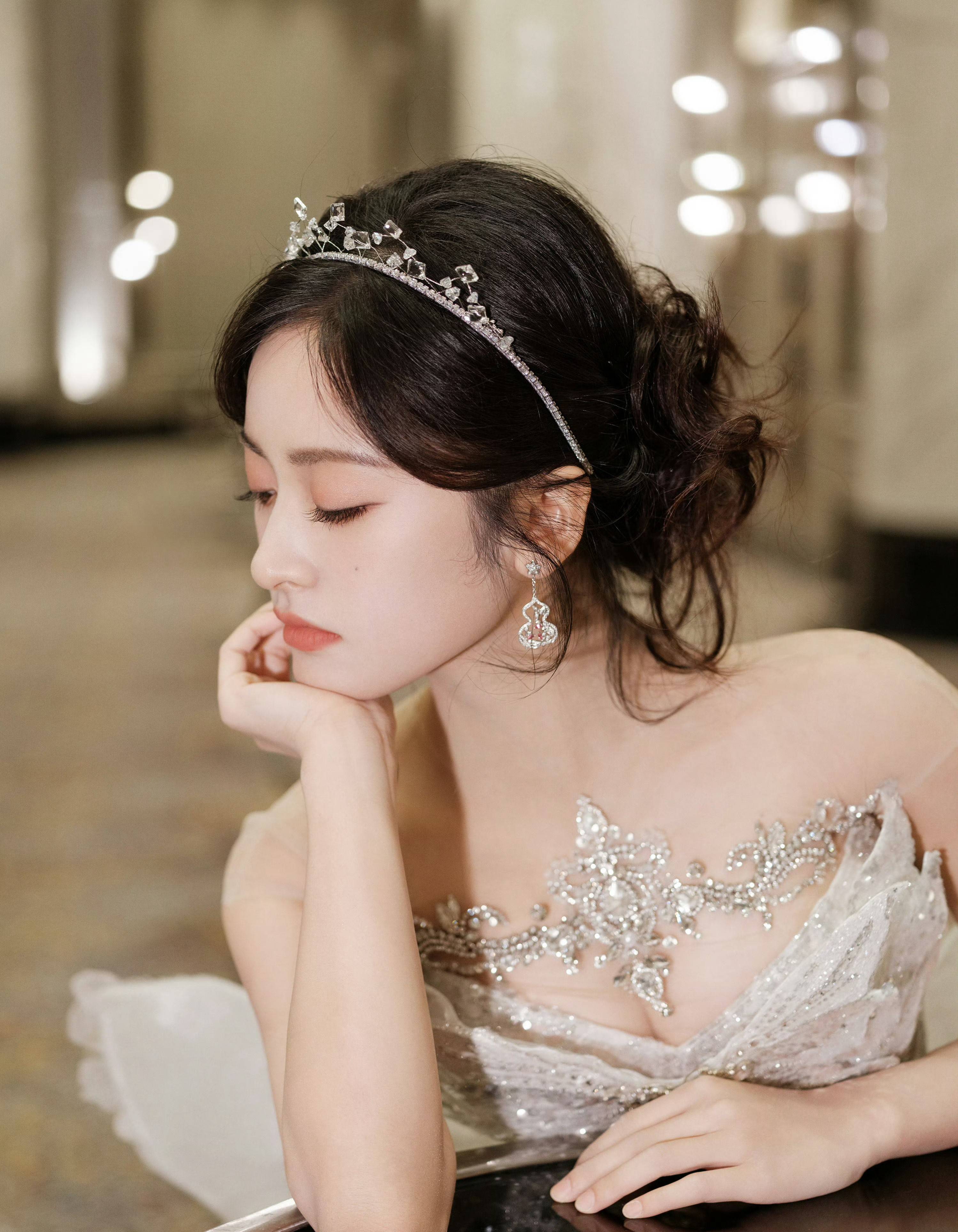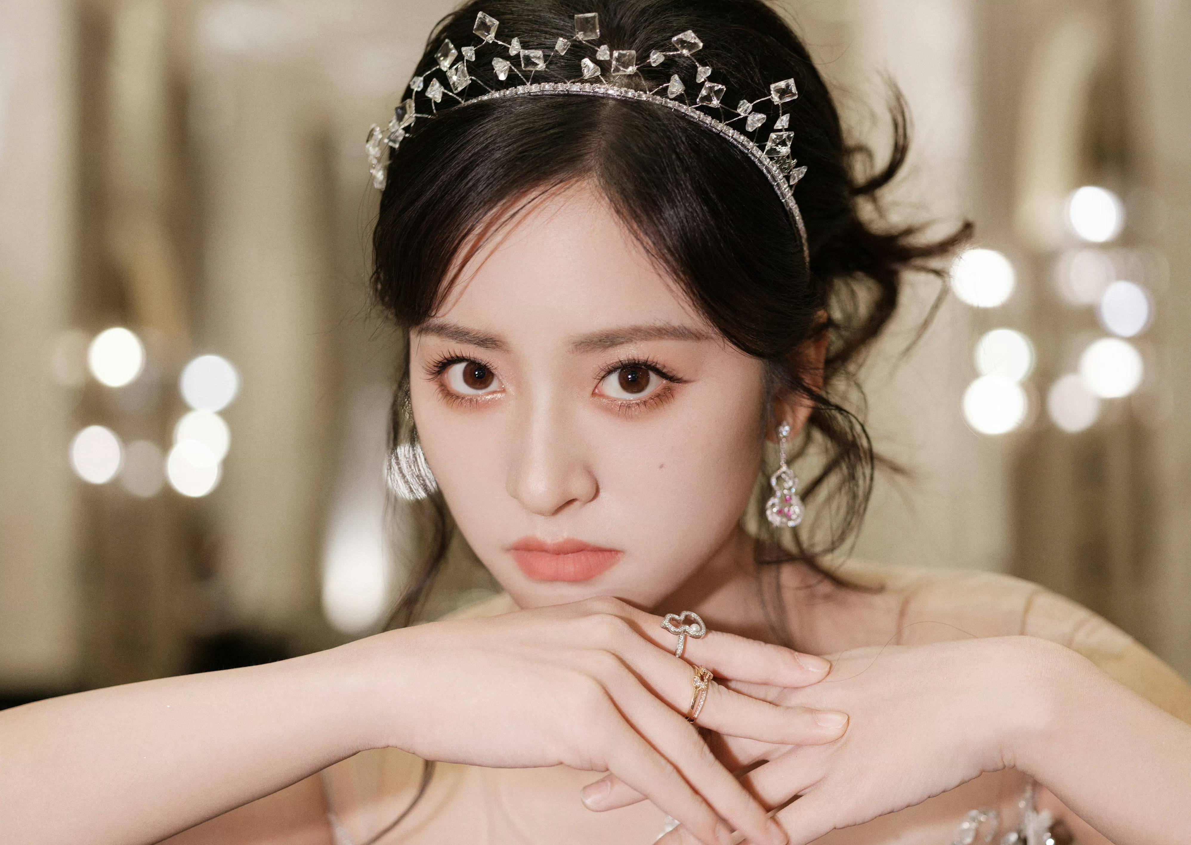 搜狐娱乐讯 近日,沈月的一组美照曝出。图中,沈月戴着钻石发箍和精致小耳环,五官秀气可爱,妆容精致。