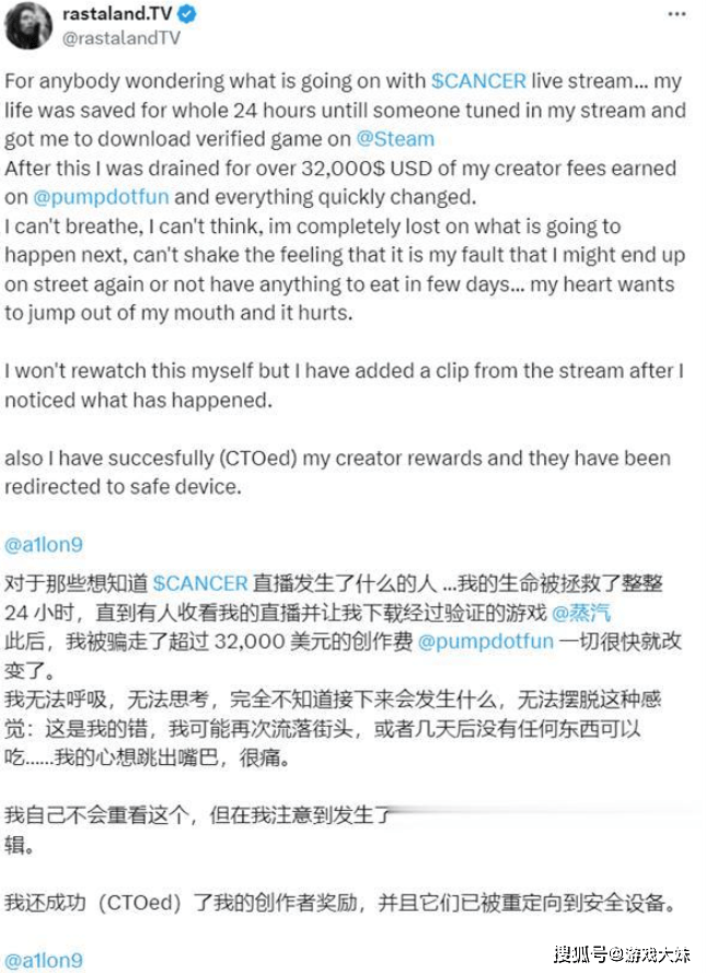 Steam上出现恶意游戏,受害人达478人,抗癌主播22万救命钱被盗,近日,Twitch主播Raivo “RastalandTV” Plavnieks遭遇了一起令人震惊的网络盗窃事件,他为抗癌治疗而收到的价值超过3.2万美元(约22.7万元人民币)的加密货币捐款,被一款名为《BlockBlasters》的Steam游戏暗藏的恶意软件全部盗走,这一事件不仅令当事人损失惨重,更在全球玩家和网络安全社区中引发了轩然大波。