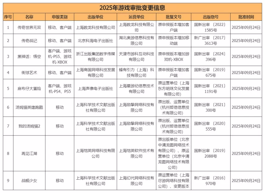 9月游戏版号