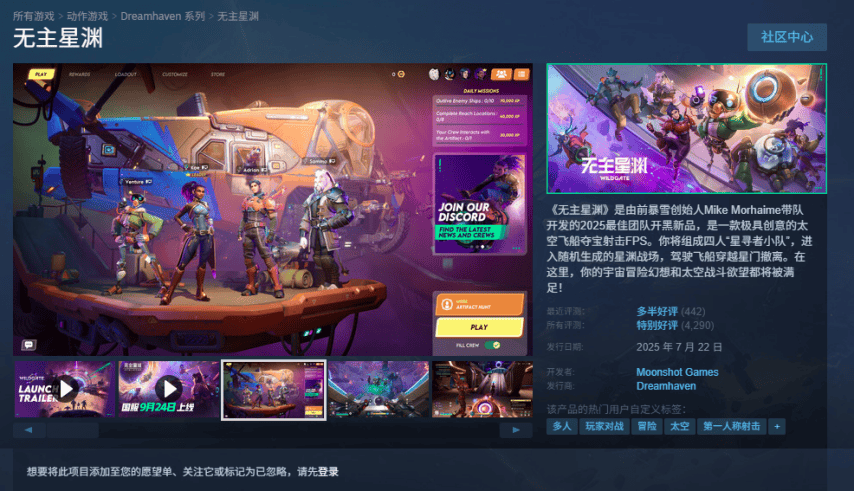 由暴雪创始人迈克·莫汉领衔、《炉石传说》之父等一众大佬打造的太空夺宝射击游戏《无主星渊》国服,终于在9月24日正式启航。国服这次很“上道”,标准版86元,四人“拼船”最低人均59元。