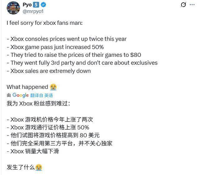 因此,虽然这一代Xbox还未正式结束,但它几乎注定会被记住的首先是微软的贪婪:两次硬件涨价(目前为止),三次Game Pass涨价(目前为止),一次软件涨价(目前为止),以及成千上万的裁员和多家工作室的关闭。