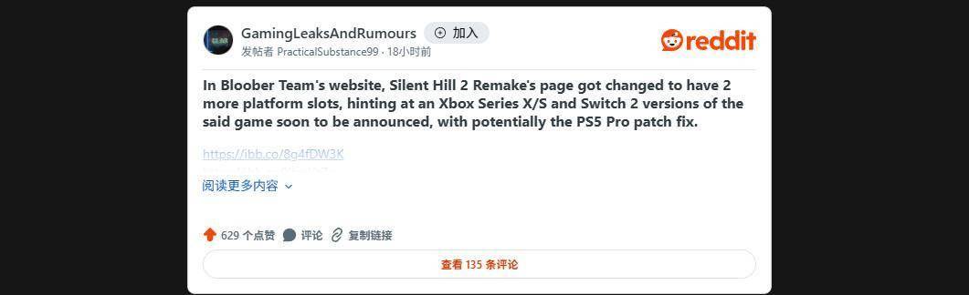 Reddit网友PracticalSubstance99发帖爆料称,Bloober Team最近更新了《寂静岭:重制版》的官网,新增了两个平台槽位,暗示Xbox Series X|S以及Switch 2版已经在路上,届时也很有可能一并为PS5 Pro版推出修复补丁。