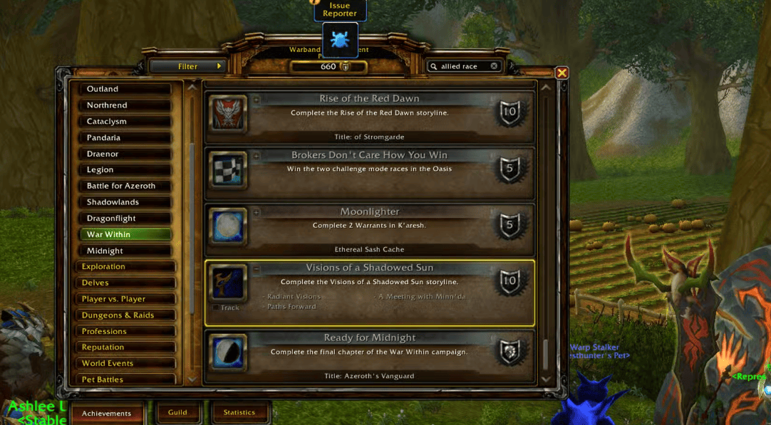 而12.0的A测有两个新的故事成就:“Visions of a Shadowed Sun”(幻日幽影)和“Ready for Midnight”(准备至暗之夜)。结合上下文,这极有可能与数据挖掘中提到的故事相同,“幻日幽影”可能就是故事战役的名称。