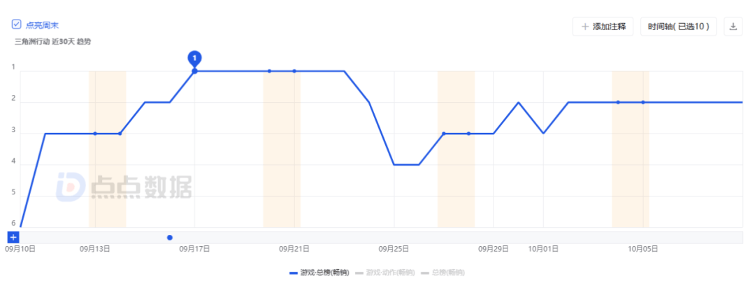 点点数据:《三角洲行动》近30天畅销榜曲线