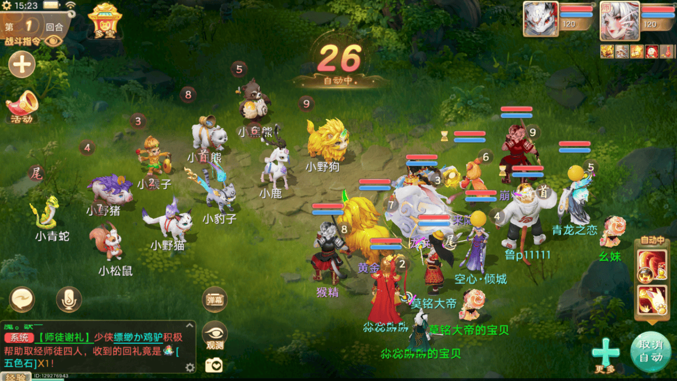 经书是被小动物们藏起来了,所以我们挑战的对象,也是非常可爱的一些小动物:小青蛇、小野猪、小松鼠、小野猫、小豹子等等。组一些输出高的队友,两三个回合就能拿下战斗。