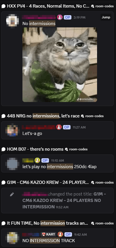 英语玩家习惯将“大直道”称为“幕间赛(intermission)”,而不少热门房间都是“无幕间”规则