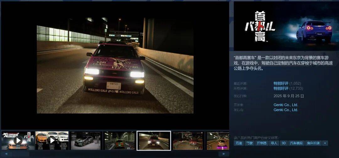 这款游戏的画面在当下肯定称不上华丽,游戏模式更是只有在东京的高速公路上找其他车子飙车。但就凭着这些,获得了1万2千个评价、94%的好评率,应该是近几年里最称得上黑马的赛车游戏。