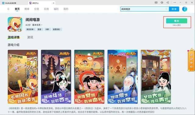 方法一:启动模拟器,进入桌面“游戏中心”,搜索“闹闹嘻游”,点击预约,待游戏公测开启即可畅玩;